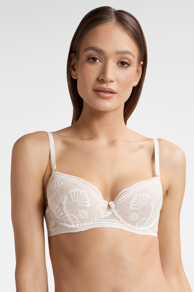 Бюстгальтер TINGLE от европейского производителя Esotiq. Кружевной бюстгальтер со съемным пуш-ап на каркасах. Чашка на базе Kassidy! Съемные регулируемые бретели. Трехступенчатая застежка на крючки. Внутренняя поверхность чашек хлопковая. Сетка: 95% полиамид, 5% эластан Кружево: 90% полиамид, 10% эластан Подклад чашки: 100% хлопок