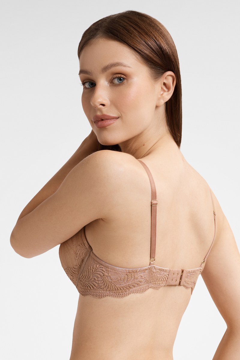 Бюстгальтер KHLOE от европейского производителя Esotiq. Кружевной бюстгальтер с небольшим пуш-ап на кости. С глубоким декольте. Несъемные регулируемые бретели. Трухступенчатая застежка на крючки. Сетка: 94% полиамид, 6% эластан Кружево: 83% полиамид, 17% эластан Подклад чашки: 100% хлопок