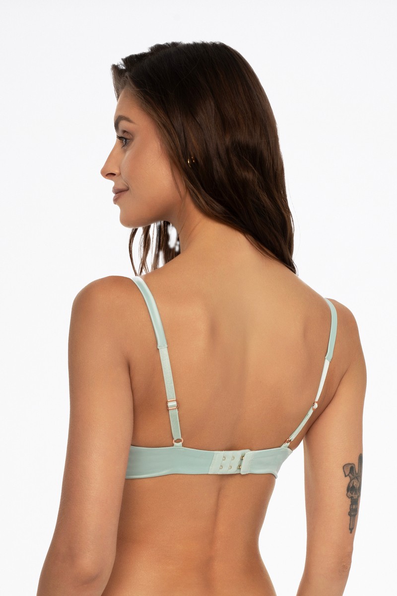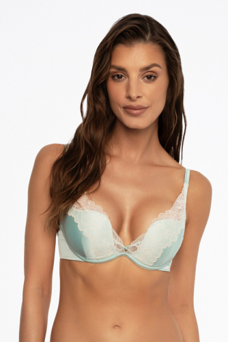 Бюстгальтер 41349 NORI на базе Claudia. Чашка пуш-ап на кости, с карманом для дополнительного съемного лепестка пуш-ап. Внутренняя поверхность чашек хлопковая. Несъемные ругулируемые бретели. Выполнен из гладкой атласной ткани и дополнен кружевом. Спинка гладкая. Состав: кружево 87% полиамид, 13% эластан, основная ткань 92% полиэстер, 8% эластан; сетка 90% полимид, 10% эластан; подклад 100% хлопок.