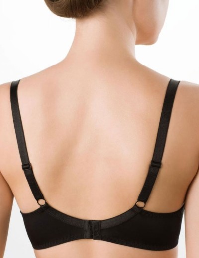 Удобный поддерживающий бюстгальтер VOVA 42725 из классической коллекции PATRICE черного цвета, с бесшовными формованными чашками. Нежное кружево, украшающее нижнюю часть чашек, добавляет модели легкость и элегантность. Такая конструкция подарит особенный комфорт обладательницам среднего размера груди, прекрасно собирает и округляет бюст, позволяя тонкой облегающей одежде сидеть идеально.