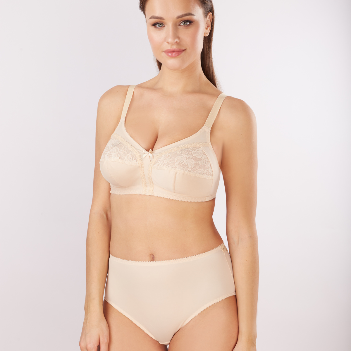 Бюстгальтер мягкая чашка с боковой корректирующей деталью из х/б трикотажного полотна, без каркасов. Нижняя деталь чашек на подкладке и х/б ткани.