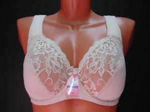 Бюстгальтер с мягкой чашечкой и диагональным швом из эластичного полотна и эластичного кружевного полотна, на каркасах. Стан, бочка и спинка выполнены из плотного эластичного полотна. Бочёк бюстгальтера продублирован изнутри очень тонкой поролоновой основой, которая обеспечивает дополнительную поддержку груди. Высота бочка 9- 10 см. Бюстгальтер имеет широкие разгрузочные бретели не сворачивающиеся и не стесняющие движений, которые снимают напряжение в области плеч и шеи благодаря уплотненной вставке из тонкого поролона. Бретель обтянута основной тканью. Задняя часть бретели выполнена из эластичной тесьмы. Регулятор длины бретели сзади. Застежка на два-три крючка, два варианта объема. Между чашечками на стане украшен маленьким бантиком.