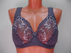 Бюстгальтер с мягкой чашечкой и диагональным швом из эластичного полотна и эластичного кружевного полотна, на каркасах. Стан, бочка и спинка выполнены из плотного эластичного полотна. Бочёк бюстгальтера продублирован изнутри очень тонкой поролоновой основой, которая обеспечивает дополнительную поддержку груди. Высота бочка 9- 10 см. Бюстгальтер имеет широкие разгрузочные бретели не сворачивающиеся и не стесняющие движений, которые снимают напряжение в области плеч и шеи благодаря уплотненной вставке из тонкого поролона. Бретель обтянута основной тканью. Задняя часть бретели выполнена из эластичной тесьмы. Регулятор длины бретели сзади. Застежка на два-три крючка, два варианта объема. Между чашечками на стане украшен маленьким бантиком.