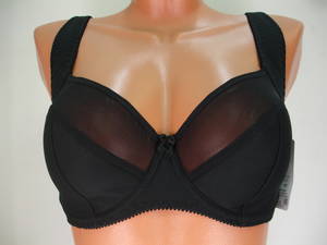 Бюстгальтер полупоролон с мягкой чашечкой и диагональным швом, нижняя деталь с Т-образным швом, на каркасах. Бюстгальтер на тонкой поролоновой основе в нижней части чашечки, весь обтянут эластичным полотном. Спинка, стан и бочка выполнены из эластичного полотна. Бюстгальтер имеет широкие разгрузочные бретели не сворачивающиеся и не стесняющие движений, которые снимают напряжение в области плеч и шеи благодаря уплотненной вставке из тонкого поролона. Бретель обтянута основной тканью. Задняя часть бретели выполнена из эластичной тесьмы. Высота бочка 8 - 10см. Регулятор длины бретели сзади. Застежка на два крючка, два варианта объема. Между чашечками на стане украшен маленьким бантиком.