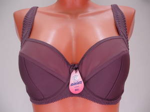 Бюстгальтер полупоролон с мягкой чашечкой и диагональным швом, нижняя деталь с Т-образным швом, на каркасах. Бюстгальтер на тонкой поролоновой основе в нижней части чашечки, весь обтянут эластичным полотном. Спинка, стан и бочка выполнены из эластичного полотна. Бюстгальтер имеет широкие разгрузочные бретели не сворачивающиеся и не стесняющие движений, которые снимают напряжение в области плеч и шеи благодаря уплотненной вставке из тонкого поролона. Бретель обтянута основной тканью. Задняя часть бретели выполнена из эластичной тесьмы. Высота бочка 8 - 10см. Регулятор длины бретели сзади. Застежка на два крючка, два варианта объема. Между чашечками на стане украшен маленьким бантиком.