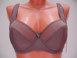 Бюстгальтер полупоролон с мягкой чашечкой и диагональным швом, нижняя деталь с Т-образным швом, на каркасах. Бюстгальтер на тонкой поролоновой основе в нижней части чашечки, весь обтянут эластичным полотном. Спинка, стан и бочка выполнены из эластичного полотна. Бюстгальтер имеет широкие разгрузочные бретели не сворачивающиеся и не стесняющие движений, которые снимают напряжение в области плеч и шеи благодаря уплотненной вставке из тонкого поролона. Бретель обтянута основной тканью. Задняя часть бретели выполнена из эластичной тесьмы. Высота бочка 8 - 10см. Регулятор длины бретели сзади. Застежка на два крючка, два варианта объема. Между чашечками на стане украшен маленьким бантиком.
