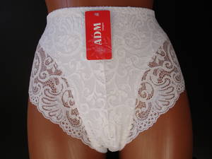 Трусики-слип с высокой  линией талии из эластичного кружевного полотна и эластичного полотна (мягкой микрофибры, которая дарит ощущение комфорта )  на передней детали. Задняя деталь выполнена из эластичного полотна. Трусики-слип сделаны с использованием хлопковой ластовицы.