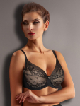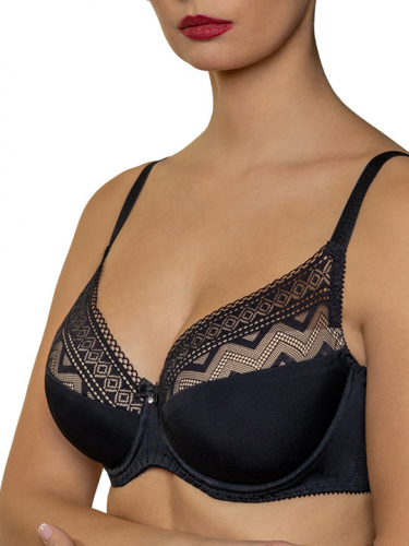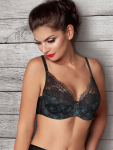 Бюстгальтер "пуш-ап" на стане. Выполнен из эластичного кружева с орнаментом "геометрия", эластичной микрофибры. Внутренняя часть чашек продублирована хлопком. Т-образная вытачка обеспечивает уникальную поддержку груди и делает ее визуально более округлой.
