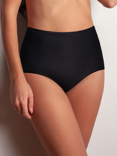 Трусы-слип со средней линией талии. Выполнены из эластичной микрофибры и эластичного кружева. Срезы по краю ножек обработаны на плоскошовной машине. Украшение: атласный бантик.
