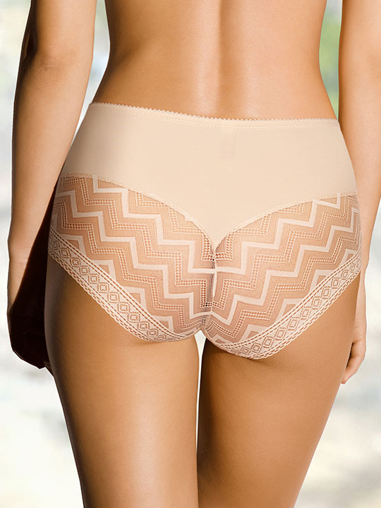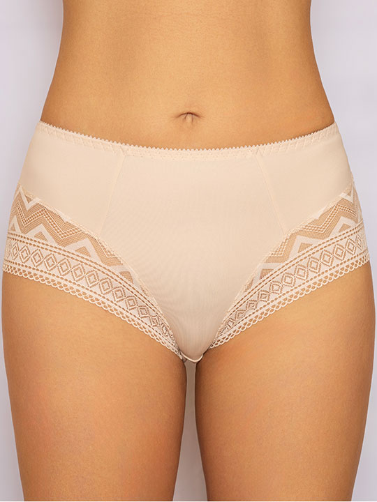 Трусы-слип комфорт с завышенной линией талии. Выполнены из микрофибры без блеска и эластичного кружева с орнаментом "геометрия". Ультратонкое эластичное кружево, как "вторая" кожа. Идеально подходят для обтягивающих брюк и юбок.