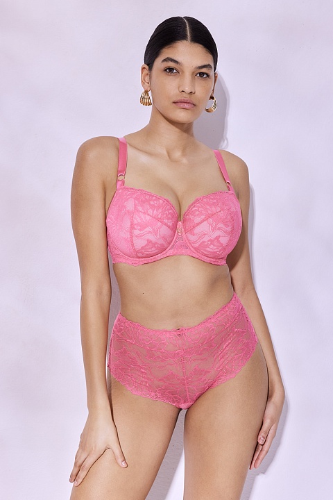 Бюстгальтер Coachella на каркасах с чашками на тонком поролоне и съемными вкладышами. Внутренняя сторона чашки проложена хлопковым трикотажем, наружная покрыта роскошным кружевом с цветочным узором. Бретельки регулируются по длине, на спине застежка на крючки-петли. Данная модель идеально подчеркнет форму вашего бюста, подойдет как в качестве дополнения к повседневному стилю, так и в качестве нижнего белья для особых случаев.