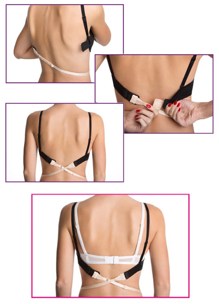 Простой и эффективный способ для понижение застежки бюстгальтера. Застежка подходит ко всем типам бюстгальтеров, что позволит вам носить классический бюстгальтер под очень декольтированные на спине наряды. 80% полиэстер 20% эластан