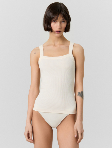 Боди женское из эластичного трикотажного кулирного полотна. Задняя деталь, силуэта слипы, декорирована эластичным кружевом по низу. Верхние срезы деталей переда и спинки обработаны обтачкой из кулирного полотна, с эластичной тесьмой 6 мм (жилка WT4-6, devsel 13460W) внутри. Нижний срез обтачки обработан эластичной тесьмой 20 мм (жилка 20 мм, WT4-20, devsel 13195W). Подкладка ластовицы из кулирного полотна. Застежка на 3 книппера по переднему срезу ластовицы. Нижние срезы боди обработаны эластичной тесьмой 6 мм (жилка WT4-6, devsel 13460W) с лицевой стороны, на плоскошовной машине. Бретель 15 мм (SWE2-15) с регулировкой по длине.