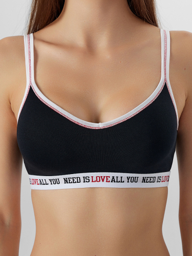 Бюстье женское с чашками-вкладышами (FN-75), выполнено из кулирного полотна на подкладке из основного полотна. Чашки треугольные, обтачные по срезам с эл тесьмой 6 мм (жилка Wt4-6, девсел 13460W) внутри. Цельнокроенный широкий стан, с пластинами. По шву притачивания чашек к стану внутри стоит эл тесьма 10 мм (жесткая без зуба WTWE-10, девсел 487W).