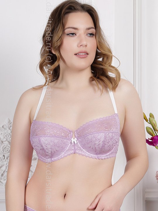 Бюстгальтер с мягкой чашкой, из эластичного кружева, на каркасах. Нижняя деталь и внутренний боковой усилитель чашки на подкладке из х/б трикотажного полотна. Боковая деталь стана на подкладке из эластичной сетки.