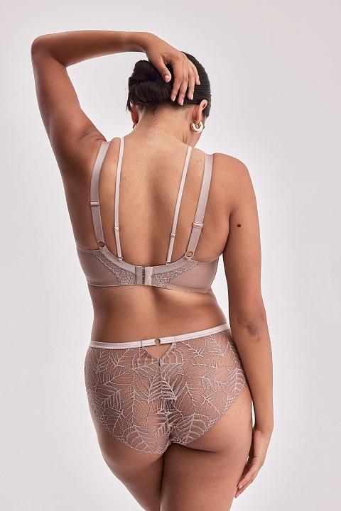 Бюстгальтер Denver на каркасах с чашками на тонком поролоне и съемными вкладышами. Внутренняя сторона чашки проложена хлопковым трикотажем. Бретельки отстегиваются и регулируются по длине, на спине застежка на крючки-петли. Данная модель идеально подчеркнет форму вашего бюста, подойдет как в качестве дополнения к повседневному стилю, так и в качестве нижнего белья для особых случаев. Бюстгальтер украшен съемными стрепами и золотистым колечком между чашек.