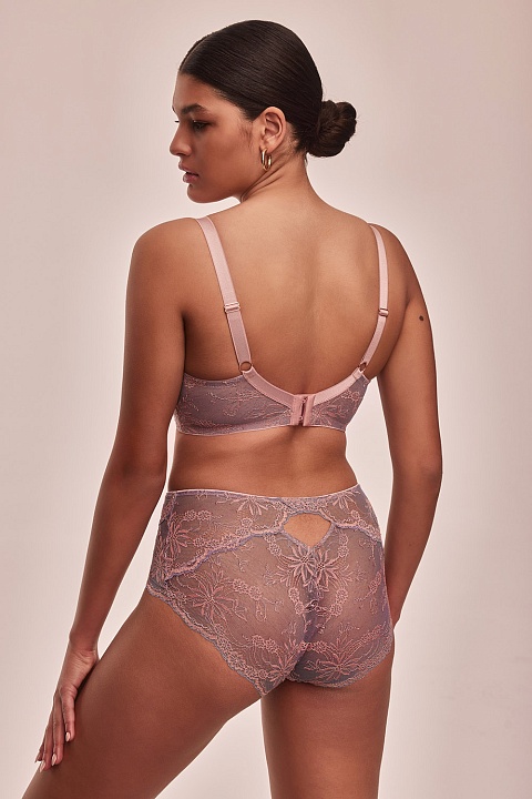 Бюстгальтер Madera на каркасах с чашками на тонком поролоне и съемными вкладышами. Внутренняя сторона чашки проложена хлопковым трикотажем. Бретельки регулируются по длине, на спине застежка на крючки-петли. Данная модель идеально подчеркнет форму вашего бюста, подойдет как в качестве дополнения к повседневному стилю, так и в качестве нижнего белья для особых случаев. Между чашек украшение в виде подвески и атласной ленточки.