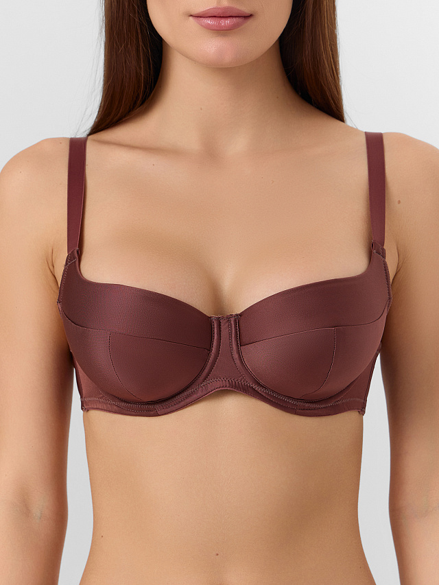 Бюстгальтер макси женский коричневый с сатиновым блеском