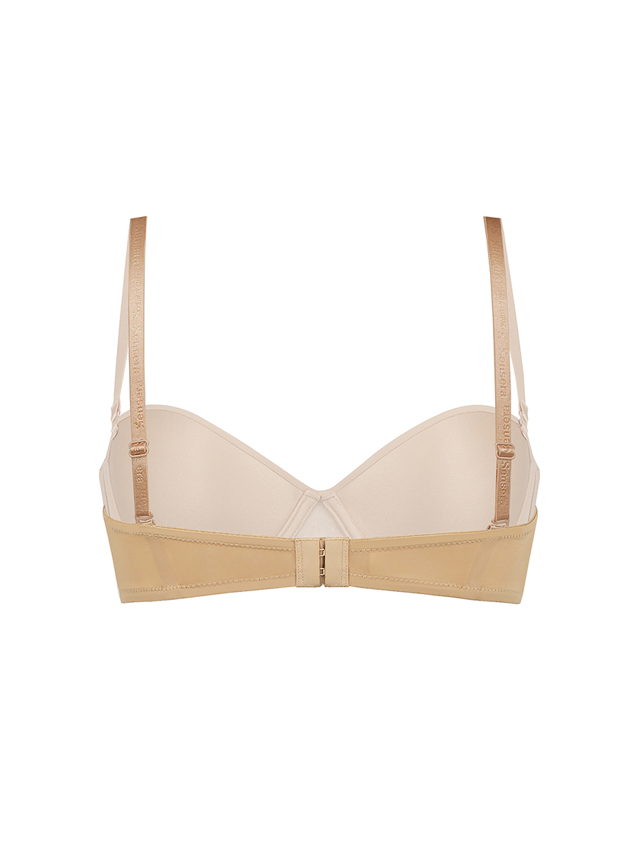 Гладкий базовый бюстгальтер Bandeau bra с формованными чашками на каркасах, без push-up во всех размерх и с боковыми корсетными вставками. Силиконовая лента по верхнему срез бочка. Застежка на 2 крючка и 3 ряда петель.Эластичные бретели можно откорректировать по длине. Бретели съемные. Ширина бретелей на объемы 70, 75 и 80 см с чашками А,В,С - 10мм, на объемы 75, 80 и 85 с чашкой D и размер 85С - 15 мм. Изделие украшают брендированные бретели и металлическая капелька с первой буквой наименования бренда