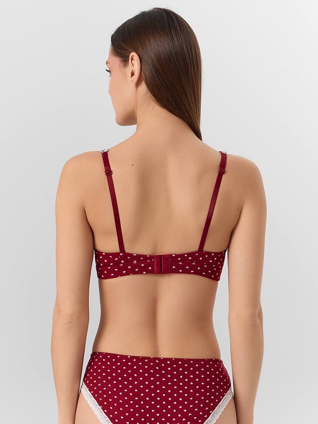 Красный женский бюстгальтер с мягкими чашками без каркасов — это выбор для повседневного комфорта и нежной эстетики. Он выполнен из мягкой рибаны, которая обеспечивает эластичное, бережное облегание и обладает хорошей воздухопроницаемостью.
