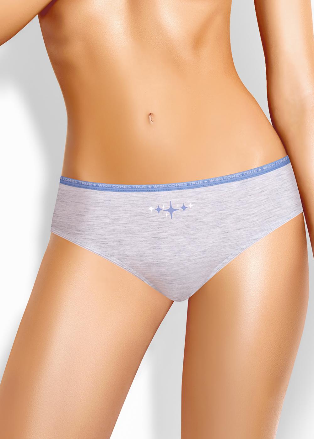 "Описание: Трусы бикини женские из эластичного хлопкового полотна. Обработка краев по талии - окантовка с принтом, по ноге - полуокантовка. Спереди принт.