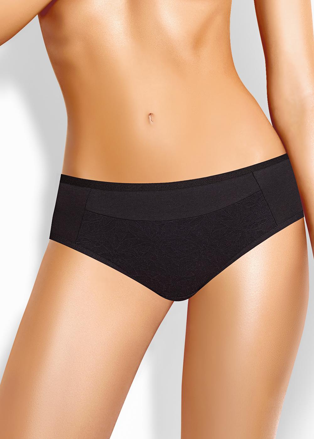 "Описание: Трусы бикини женские из эластичного хлопкового полотна. По переду рез с кружевной вставкой. Обработка краев по талии и ноге окантовочная резинка.