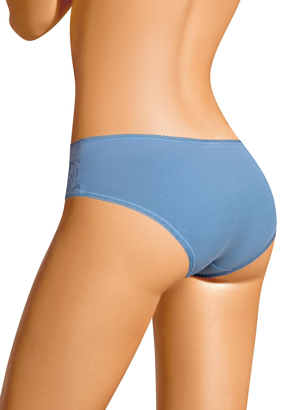 "Описание: Трусы бикини женские из эластичного хлопкового полотна. Обработка краев - ажурная резинка с фестоном. По переду настрачивается кружево.