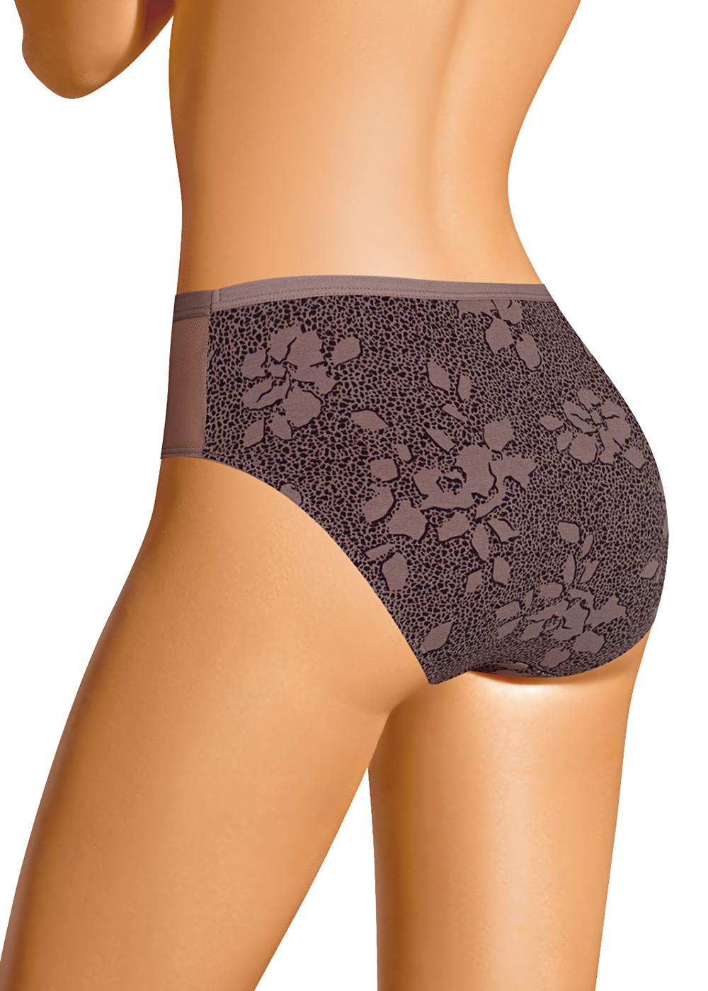 "Описание: Трусы слипы женские из эластичного хлопкового полотна. Обработка краев по талии - окантовочная резинка, по ноге - полуокантовка. По переду боковые вставки из сетки, атласный бант..