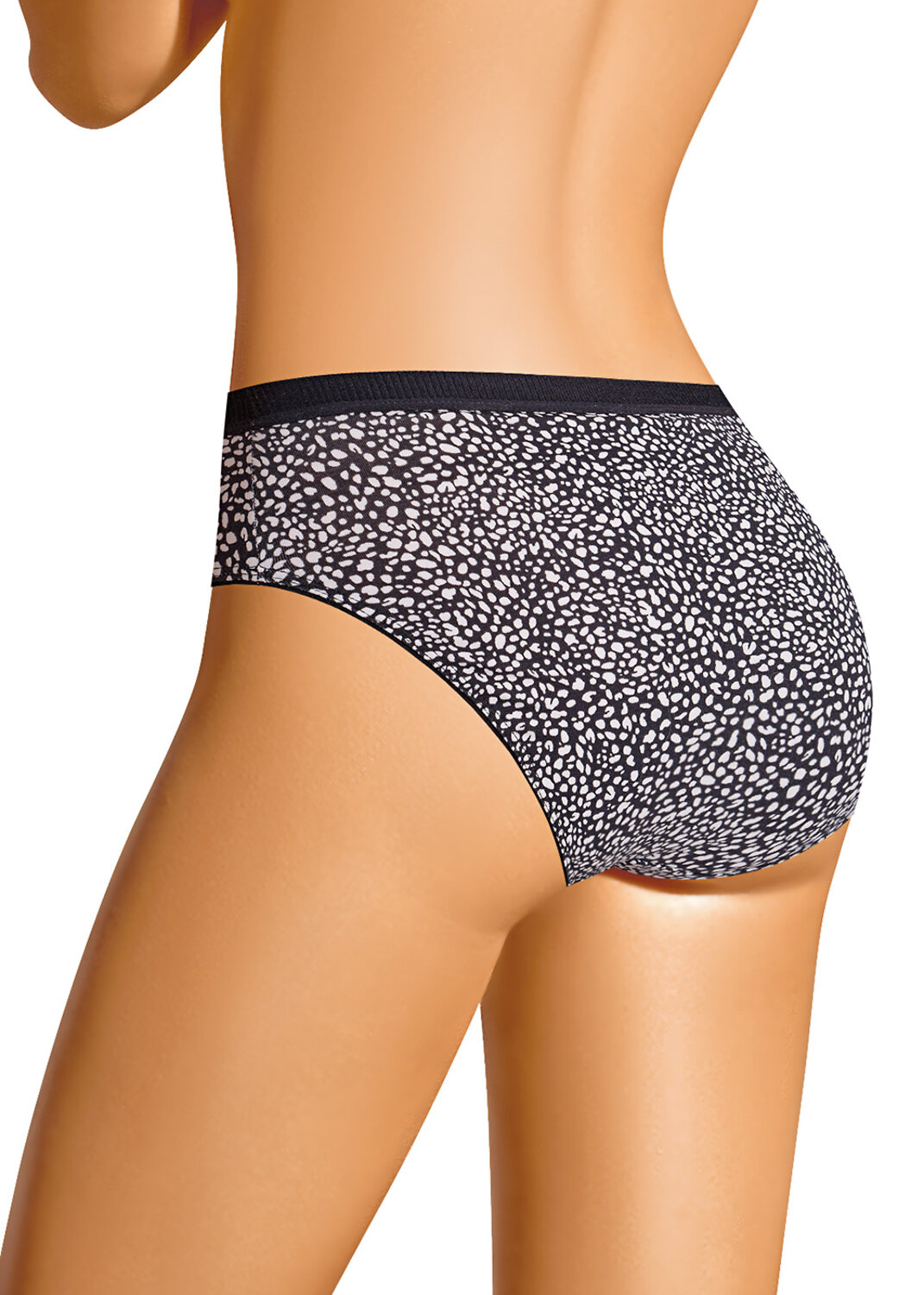 Трусы слипы женские из эластичного хлопкового полотна. Обработка краев по талии - окантовочная резинка, по ноге - полуокантовка. По переду атласный бант. чёрный/молочный