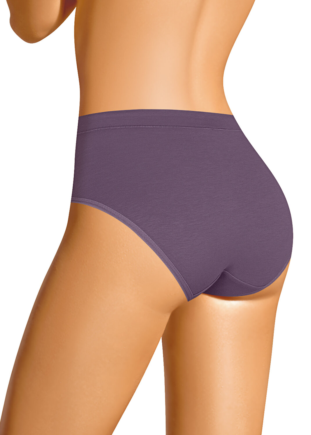 Трусы слипы-макси женские из плотного эластичного хлопкового полотна. Обработка краев по талии - обтачка с внутренней резинкой, по ноге - окантовочная резинка. По талии обработка "зубы". т.фиолетовый
