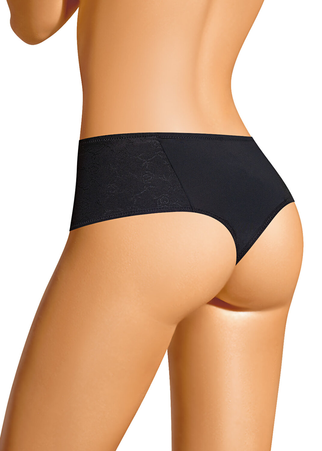 Трусы-стринги утяжка женские из полиамида. Перед дублируется вставкой из эластичного жаккардового полотна. Производство Китай. чёрный