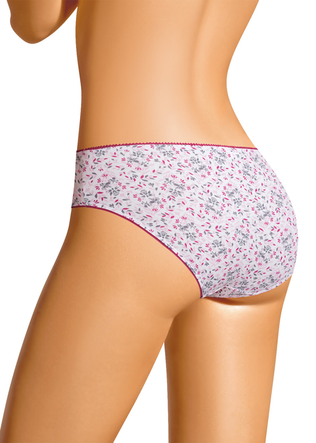 Трусы бикини женские из эластичного хлопкового полотна. Обработка краев по талии - ажурная резинка, по ноге - п/окантовка. молочный/малиновый