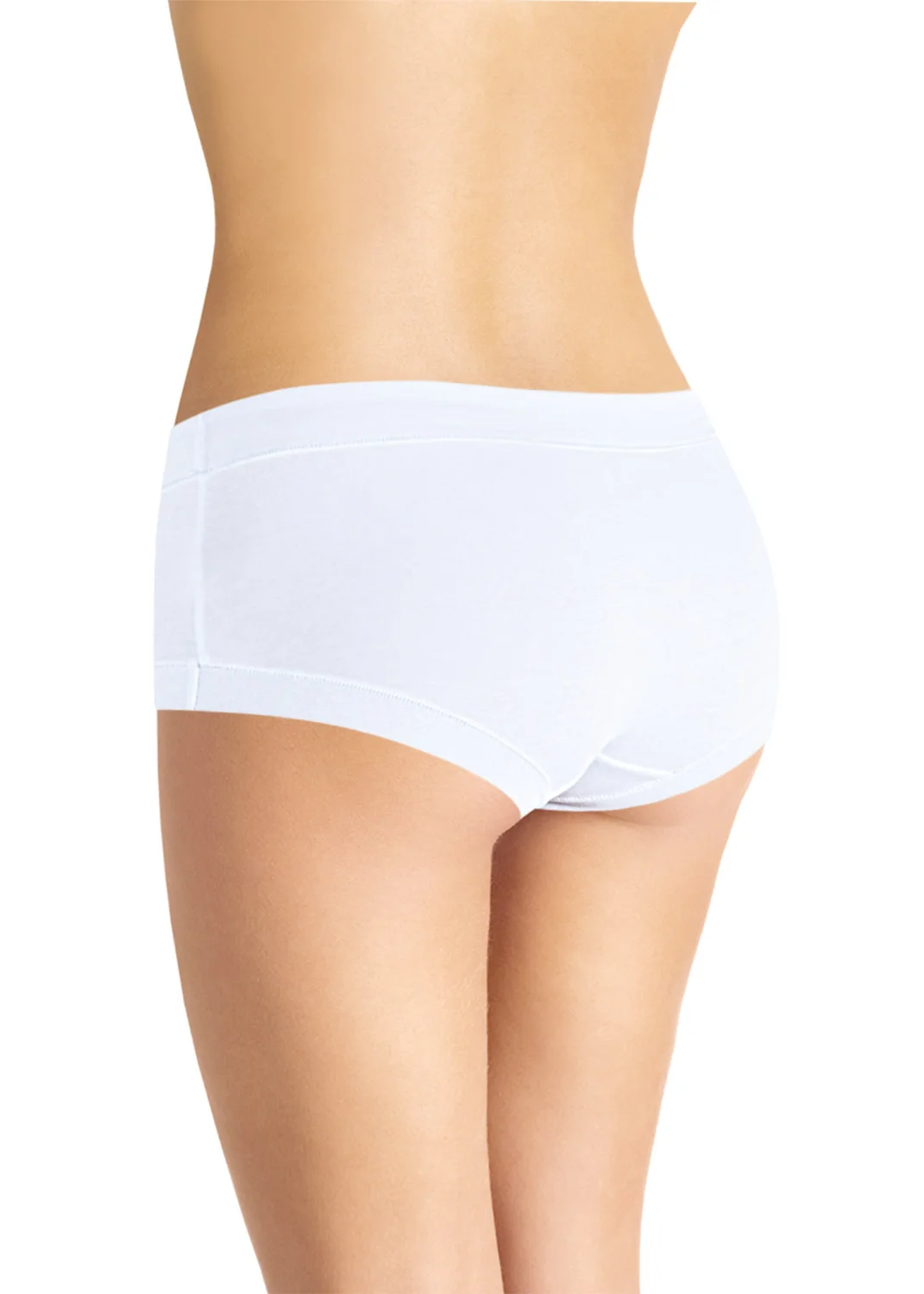 Трусы шорты-макси из эластичного полотна модал, по ножке и талии - притачная бейка из основного полотна. Пояс декорирован нашивкой с фирменным логотипом. белый
