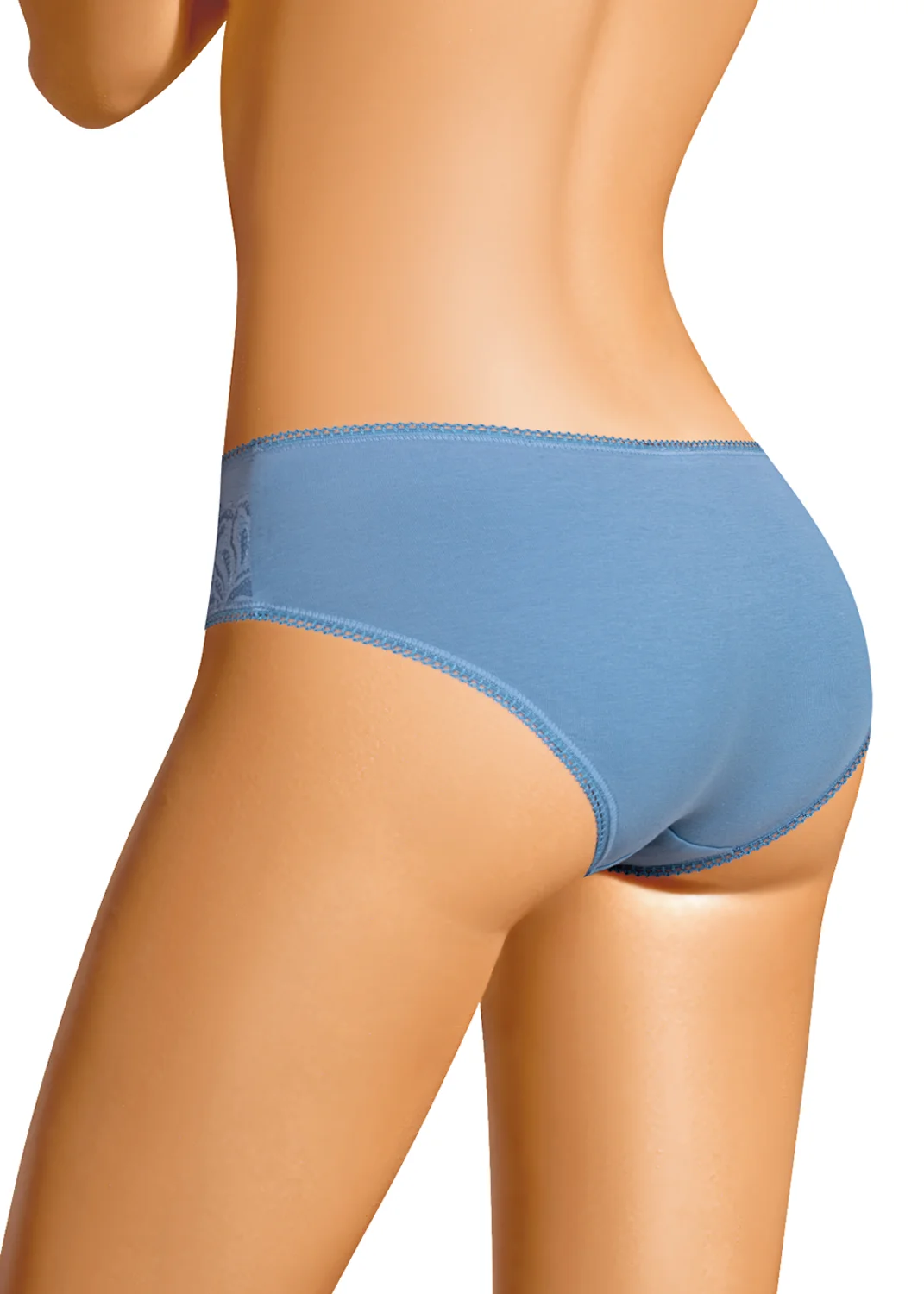 Трусы бикини женские из эластичного хлопкового полотна. Обработка краев - ажурная резинка с фестоном. По переду настрачивается кружево. джинсовый