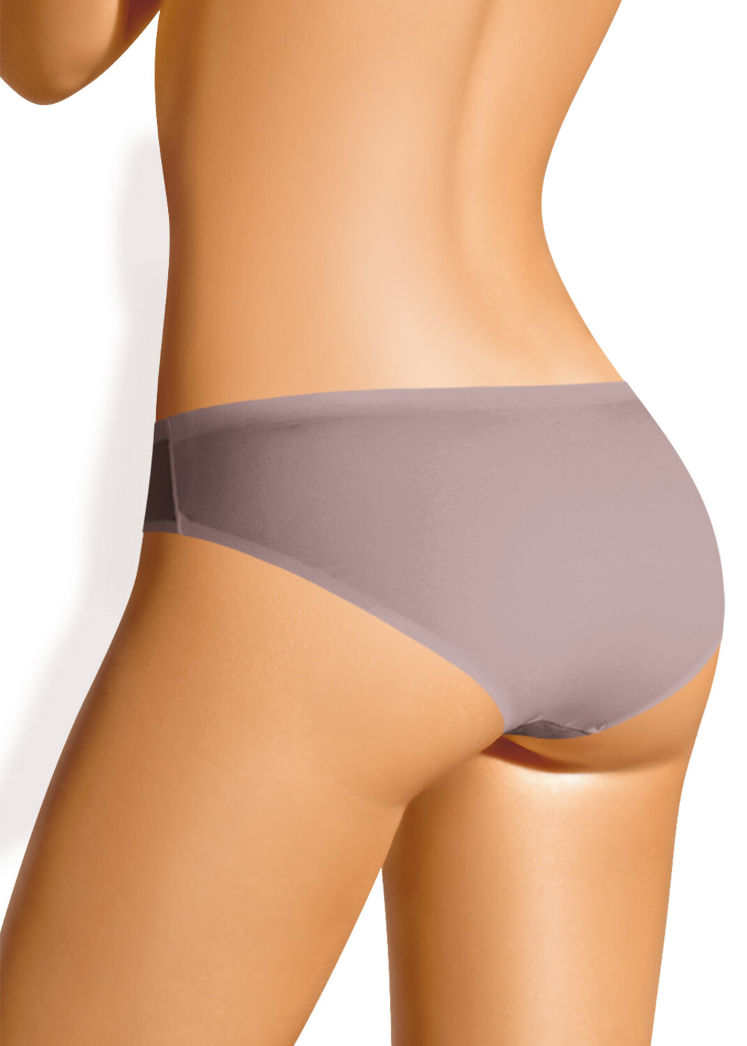 Трусы бикини женские из полиамида с эластаном. По переду вставки из сетки. Обработка краев - подклееный край. Хлопковая ластовица.