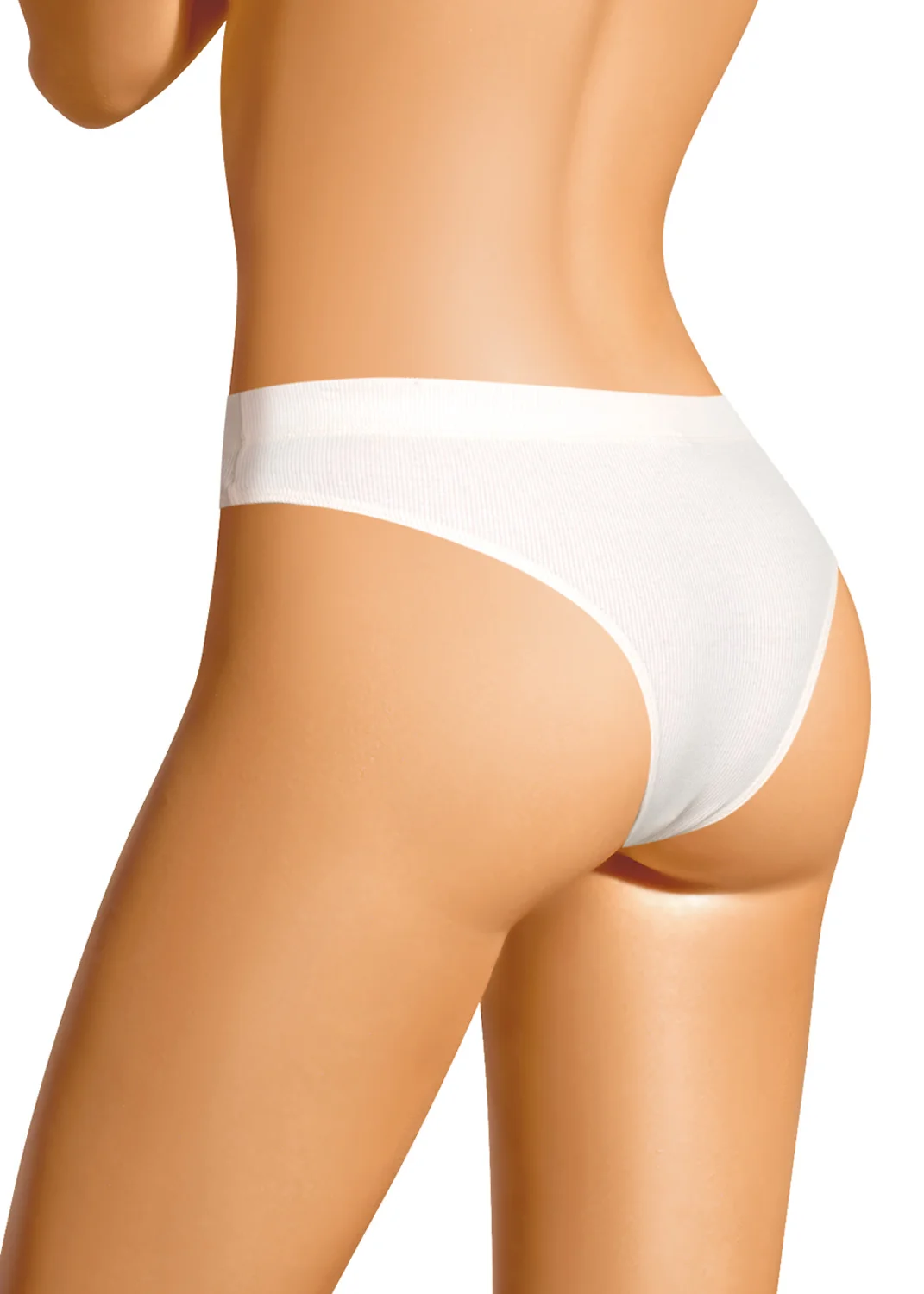 Трусы бразилиана женские из эластичного хлопкового полотна кашкорсе лапша. Обработка краев по талии и ноге - подгибка с внутренней резинкой. Спереди на поясе по центру жаккардовая нашивка. ванильный