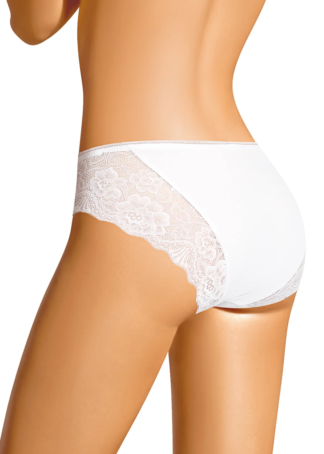 Трусы слипы женские из эластичного хлопкового полотна. По переду и спинке рез с кружевными вставками. Обработка краев по талии ажурная резинка (точечный зигзаг). белый