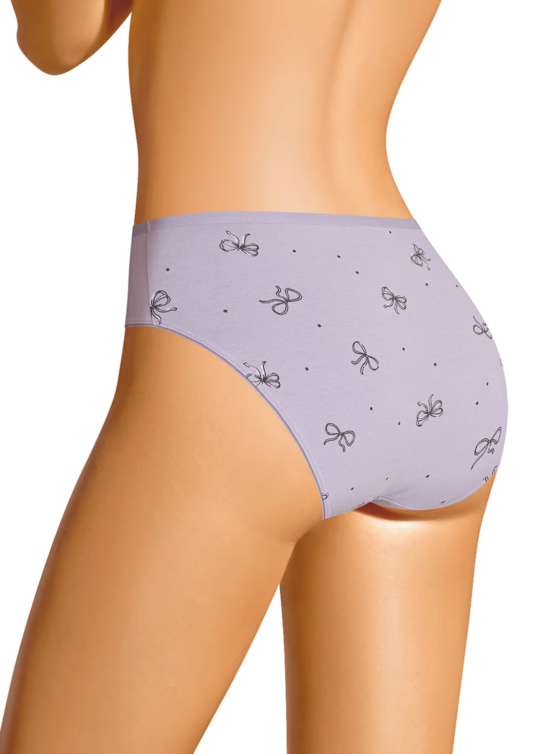 Трусы слипы женские из эластичного хлопкового полотна. Обработка краев по талии - окантовочная резинка, по ноге - полуокантовка. По переду атласный бант. св.фиолетовый/т.серый