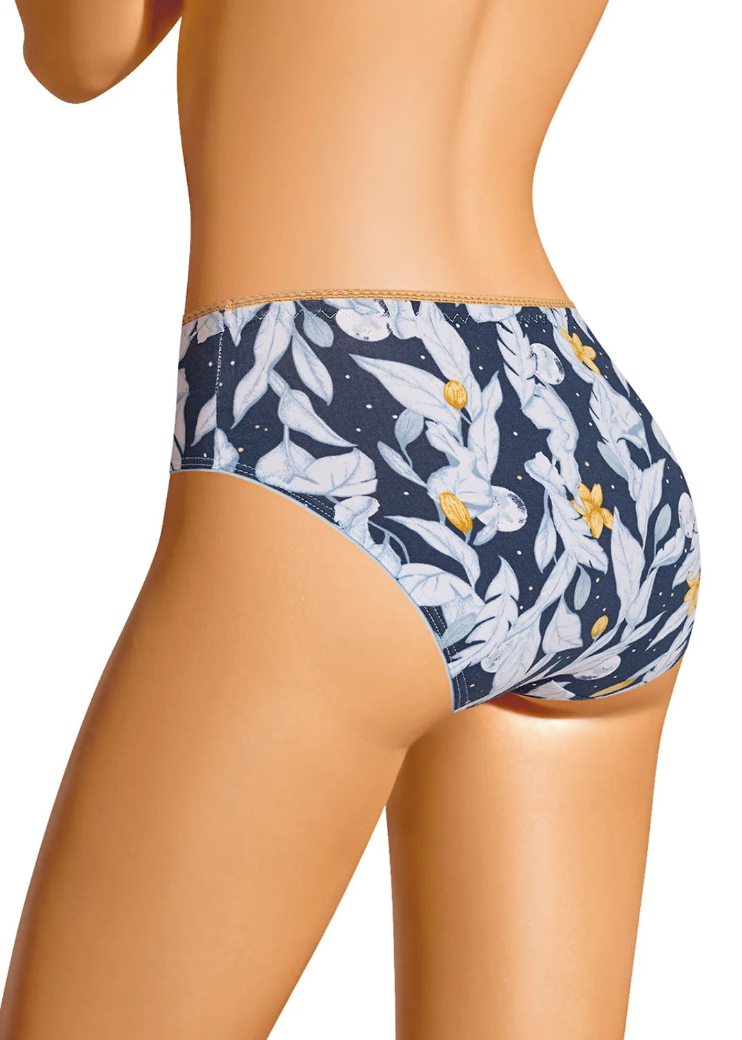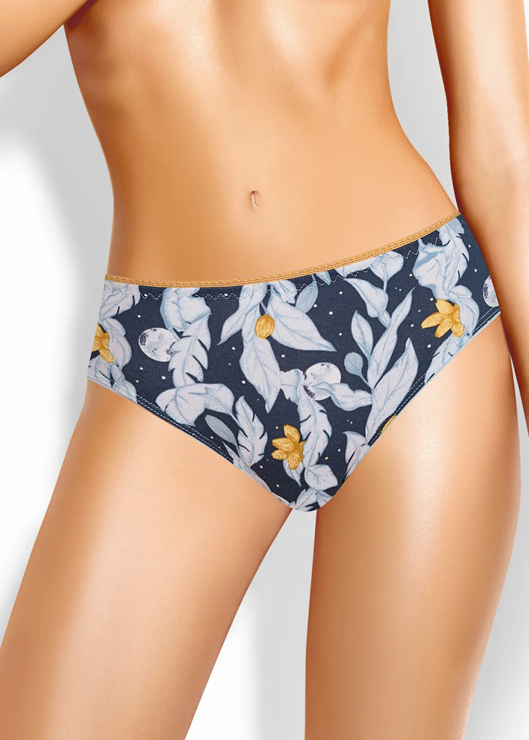 Трусы слипы женские из эластичного хлопкового полотна. Обработка краев по талии ажурная резинка, обработка зигзаг. По ноге - полуокантовка. т.синий/св.серый