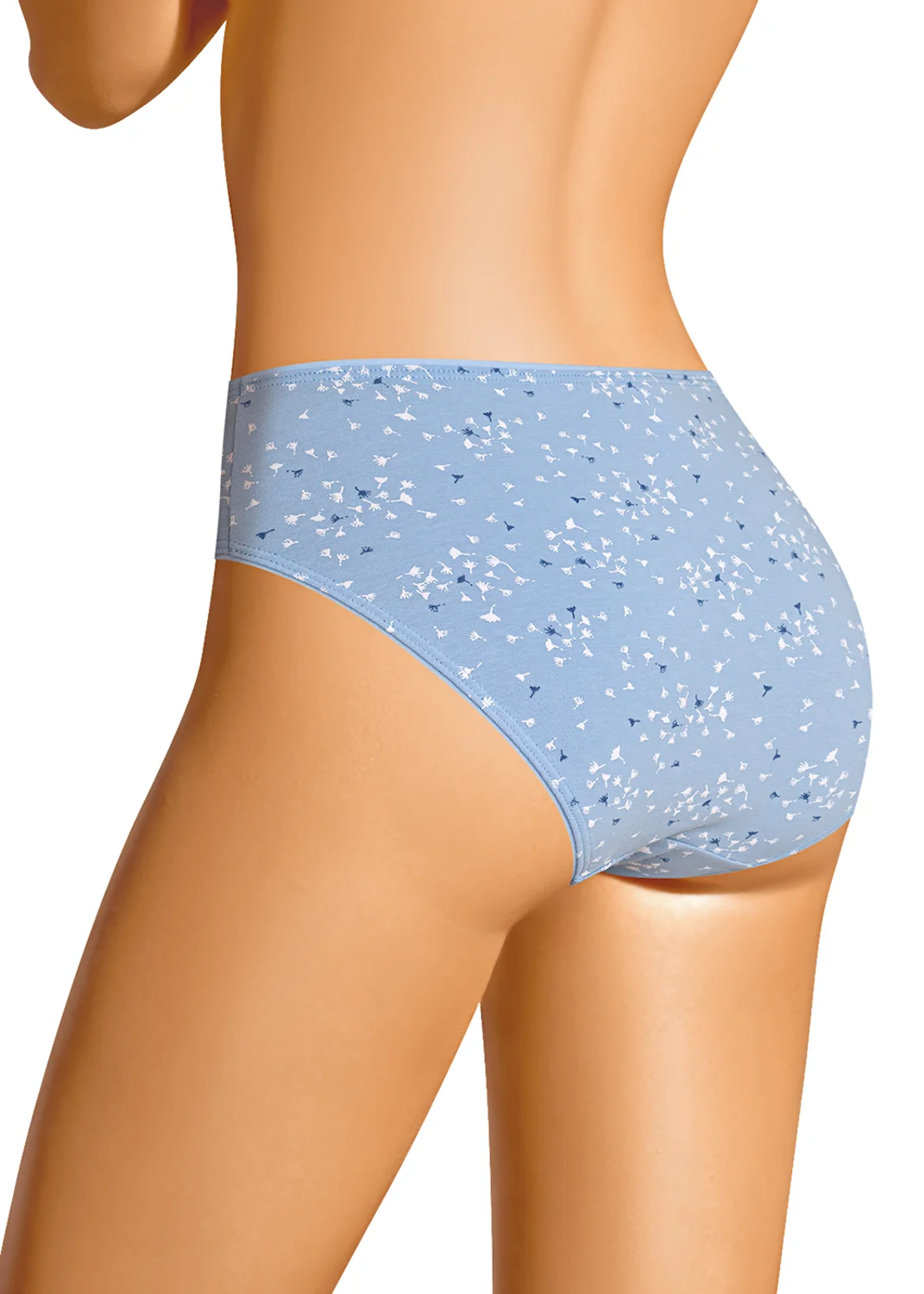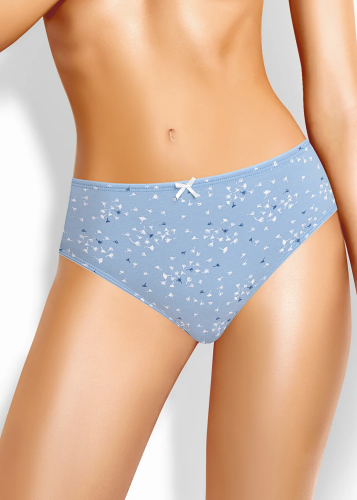 Трусы слипы женские из эластичного хлопкового полотна. Обработка краев по талии- резинка с кантом, по ноге - полуокантовка. По переду атласный бант. голубой/молочный