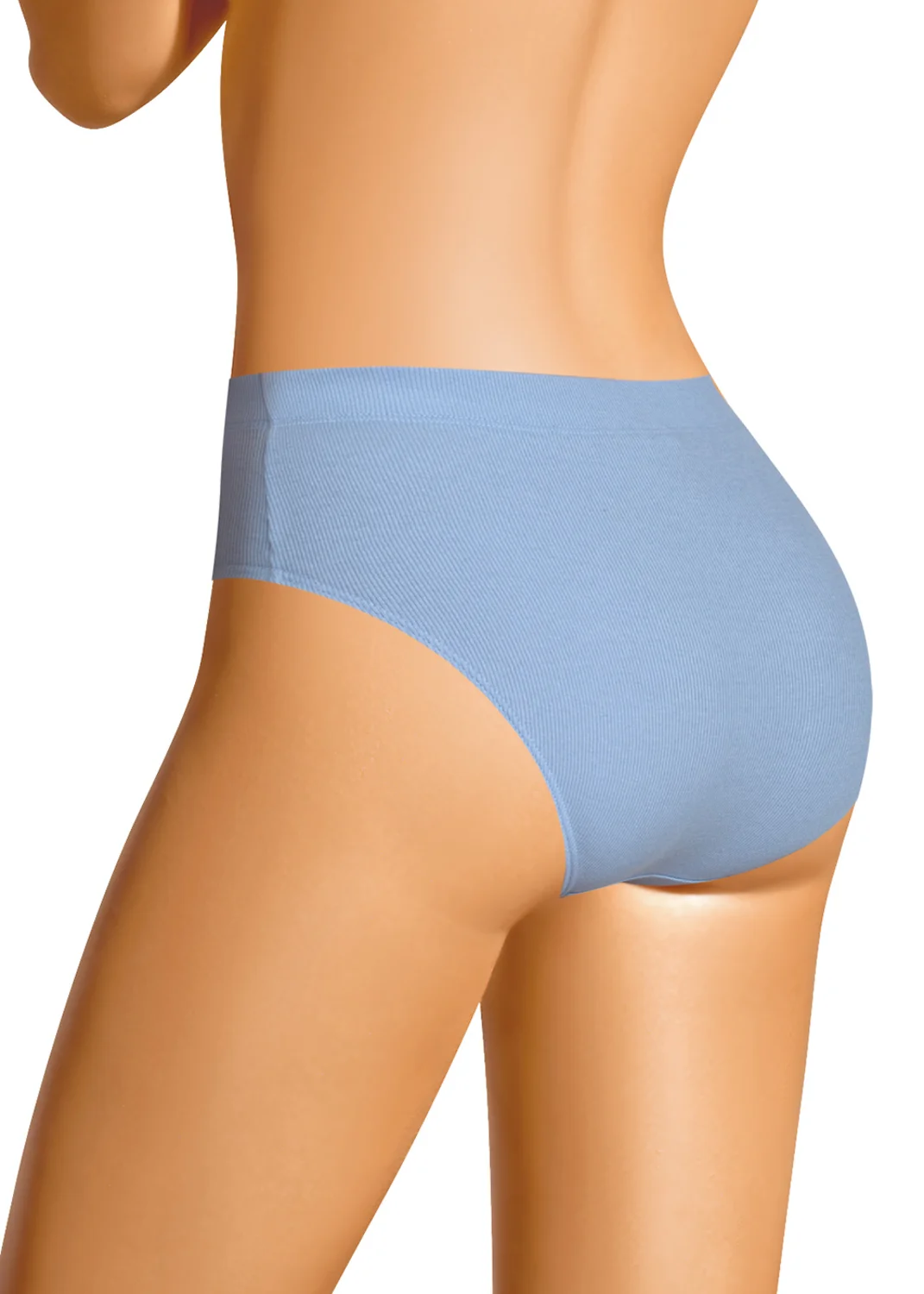 Трусы слипы женские из эластичного хлопкового полотна кашкорсе лапша. Обработка краев по талии и ноге - подгибка с внутренней резинкой. Спереди на поясе по центру жаккардовая нашивка. св.голубой