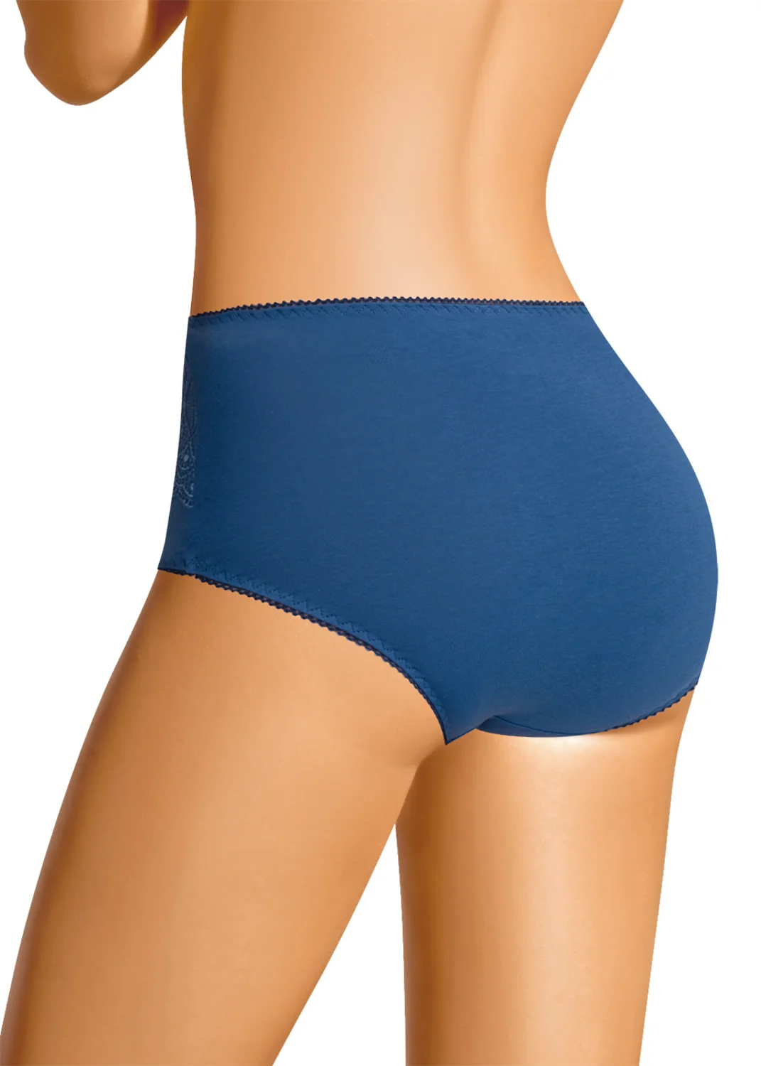 Трусы макси женские из плотного эластичного хлопкового полотна. Обработка краев - ажурная резинка с фестоном. По переду вставки из кружева и бант. синий