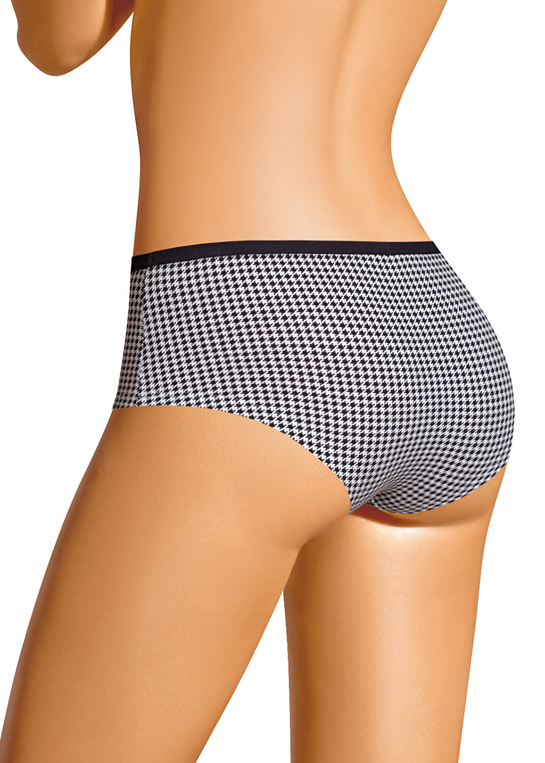 Трусы шорты женские из эластичного хлопкового полотна. Обработка краев по талии - окантовочная резинка, по ноге - подгибка. По переду атласный бант.. молочный/т.серый