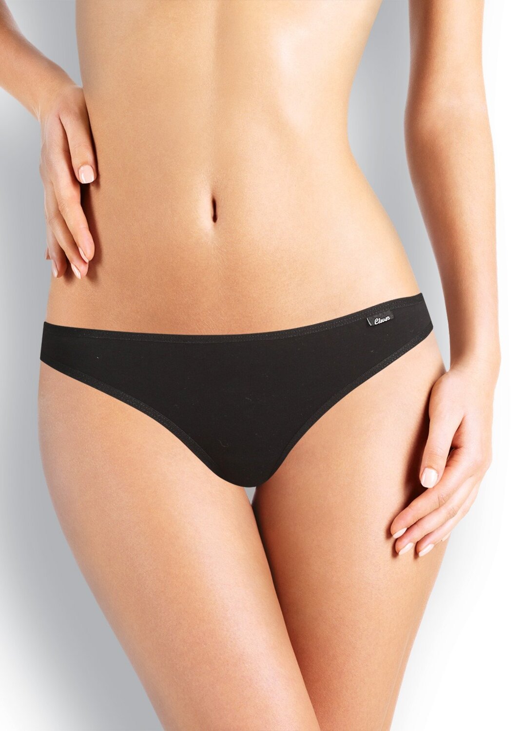 Трусы-стринги женские из эластичного хлопкового полотна. Обработка краев - узкая окантовка. Фирменный жаккардовый логотип.
