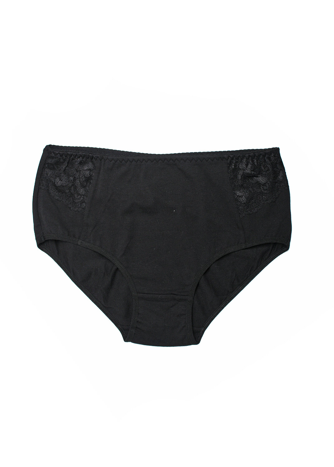 Модель-макси из однотонного трикотажного полотна с легким утягивающим эффектом с отрезным бочком, декорированным кружевом. По ножкам выполнена обработка кантом, по талии - резинкой с фестоном.