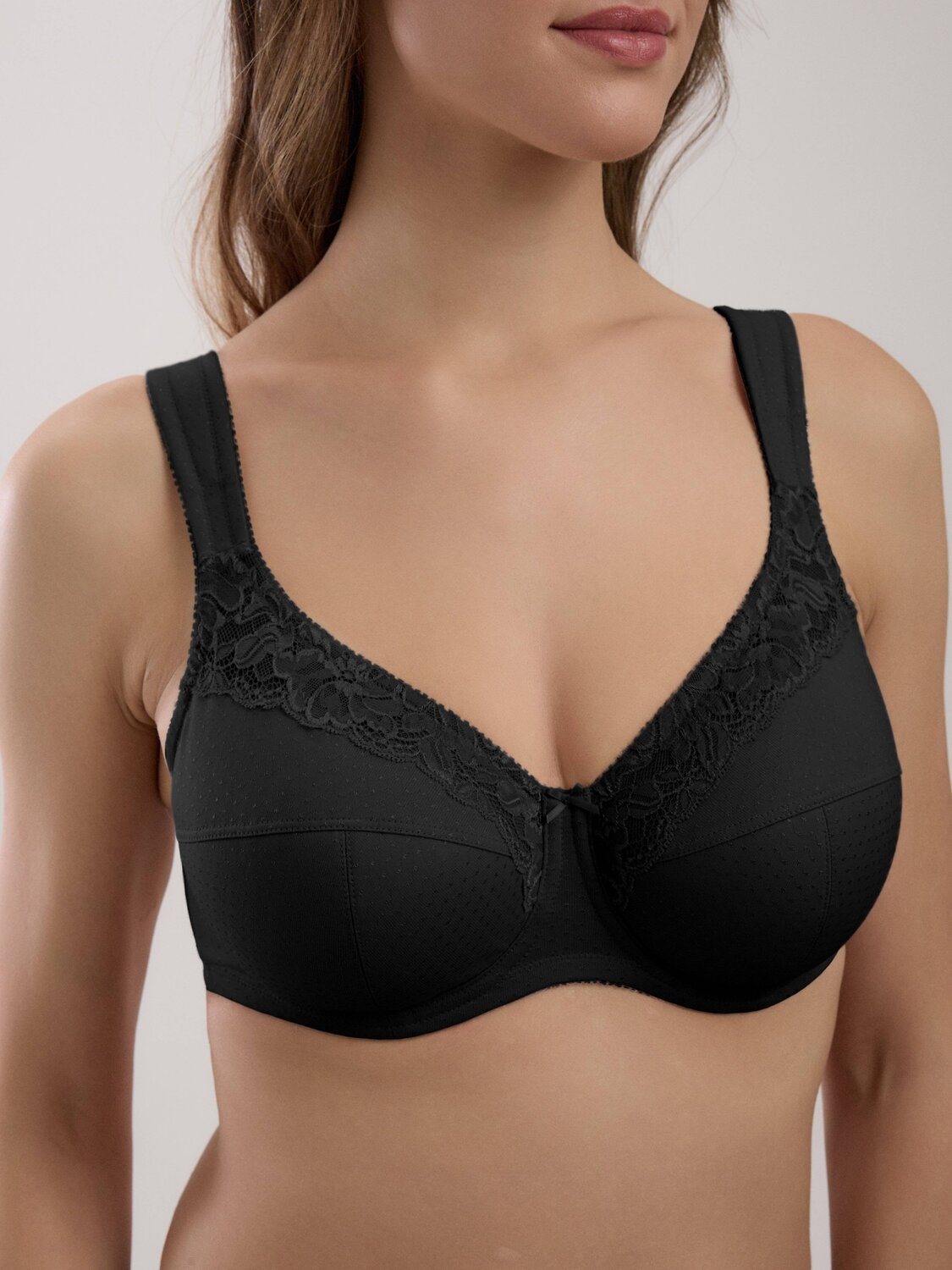 Бюстгальтер с мягкой чашкой на каркасах SUPREMA корректирует форму груди и гарантирует безупречную поддержку, необходимую для обладательниц пышных форм. Вам будет комфортно носить белье благодаря функциональным материалам и тщательно выверенным конструкциям. • мягкая чашка на каркасах с тройным T-образным членением • модель из неэластичного жаккардового полотна и эластичного кружева• нижние детали чашек ламинированы хлопком для поддержки и комфорта• стан из упругого трикотажного полотна, функциональные тесьмы и бретели для уверенной поддержки• широкие бретели на дубляже с хлопком• безупречная поддержка и абсолютный комфорт.