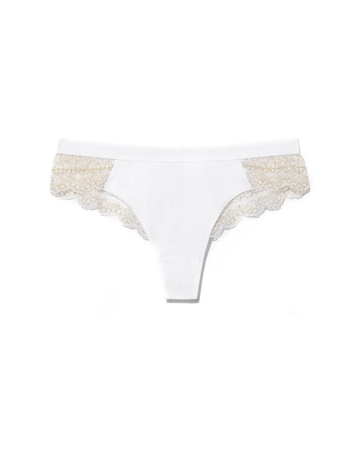 Материал передней части - практичный, приятный к телу "дышащий" трикотаж с высоким содержанием натурального хлопка. Задняя и боковые части трусиков выполнены из нежного, приятного к телу и практичного кружевного полотна с металлическим блеском. Благодаря такому дизайнерскому решению трусики великолепно сидят на любой фигуре, подчеркивая соблазнительные формы. white-gold