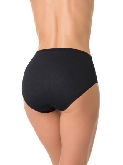 Оптовая продажа. Трусики слипы женские черного цвета, однотонные, из деликатного хлопкового полотна с добавлением спандекса, повышающий прочность и качество одежды, обладающий высокой гигроскопичностью, легкостью, не мнется. Имеют завышенную посадку, мягкую и эластичную резинку по талии, удерживающие трусы во время носки. Декорированы кружевной вставкой с цветочным рисунком на передней части изделия, придавая женственности. Гигиеничная хлопковая ластовица позволяет избежать трения и раздражения кожи. Удобная и комфортная модель для повседневного белья.