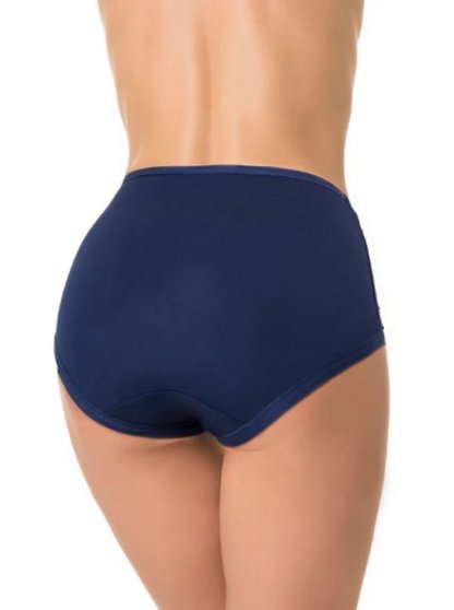 Оптовая продажа. Трусики слипы женские темно-синего цвета, однотонные, из мягкого бамбукового полотна с добавлением спандекса, повышающий прочность и качество одежды, обладающий высокой гигроскопичностью, легкостью, не мнется. Ткань гладкая, приятная на ощупь. Имеют завышенную посадку, мягкую и эластичную резинку по талии, удерживающие трусы во время носки. Передняя деталь из жаккардового полотна с цветочным рисунком. Гигиеничная хлопковая ластовица позволяет избежать трения и раздражения кожи. Удобная и комфортная модель для повседневного белья.