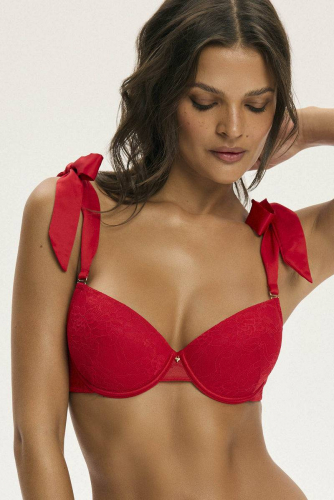 Бюстгальтер CEST от европейского производителя Esotiq. Чашка на кости со съемным пуш-ап, покрыта тонким цветочным кружевом. Внутренний подклад чашек хлопковый. Съемные классические регулируемые бретели. В комплекте идут нарядные атласные бретели. Спинка кружевная. Золотые детали. Декор - подвеска.